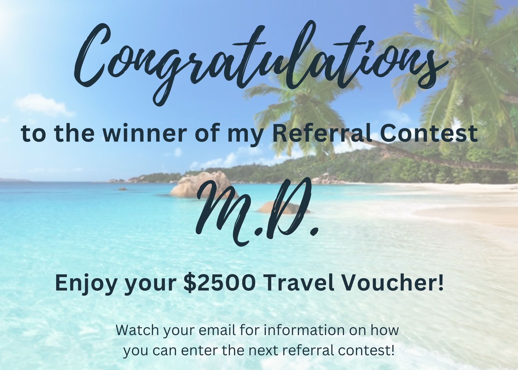 Congratulations to the Winner of my Referral Contest!