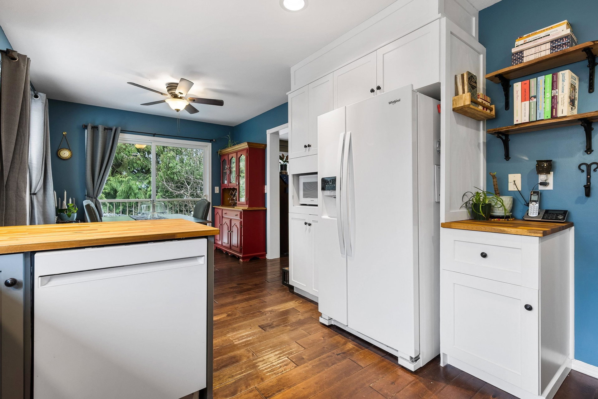 Welcome to Russell Heights! This beautiful END-UNIT TOWNHOME FEATURES 3 BDRMS, 4 BTHRMS, & A DOUBLE GARAGE. The main level boasts HARDWOOD FLOORS, A BRIGHT KITCHEN WITH PAINTED CABINETS, BUTCHER BLOCK COUNTERTOPS, & UPDATED APPLIANCES. The living room is warm & inviting with a COZY GAS FIREPLACE & LARGE WINDOWS that flood the space with natural light. Upstairs, you’ll find 3 spacious bdrms, including A PRIMARY SUITE W/ A WALK-IN CLOSET & AN ENSUITE BATHROOM. A convenient laundry room & a full bath complete this level. The FULLY FINISHED BSMT offers a large rec room, office space, a full bath, & ample storage. Step outside to your PRIVATE FENCED YARD with a patio space for relaxing & entertaining, concrete tiles & garden beds. All of this is just STEPS FROM PARKS, TRAILS, RECREATION & MORE!